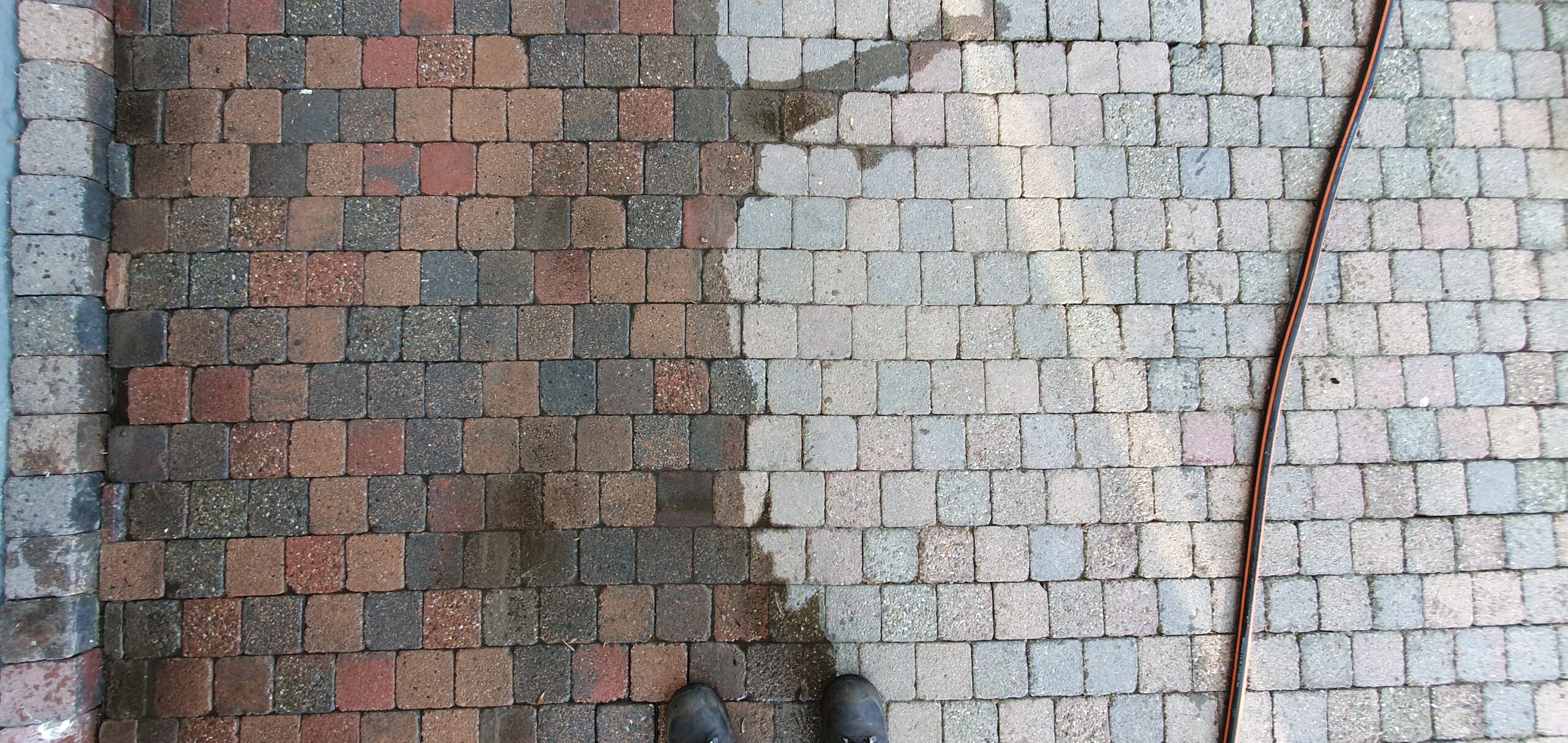 Reinigen van betontegels, betonklinkers, natuursteen, vlonders en gevels!