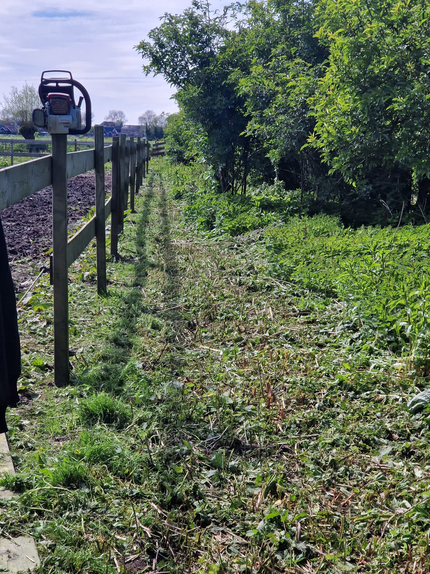 Het verwijderen van onkruid, snoeien van hagen, kettingzaag werk, het steken van de kanten.